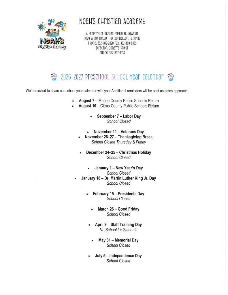Discover a nurturing environment for your child at Noah's Christian Academy. Contact us now to learn more about enrollment and available funding options!